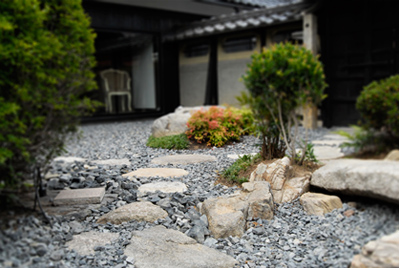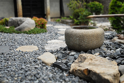 飲食店の中庭に単粒砕石40-30を使っていただきました。